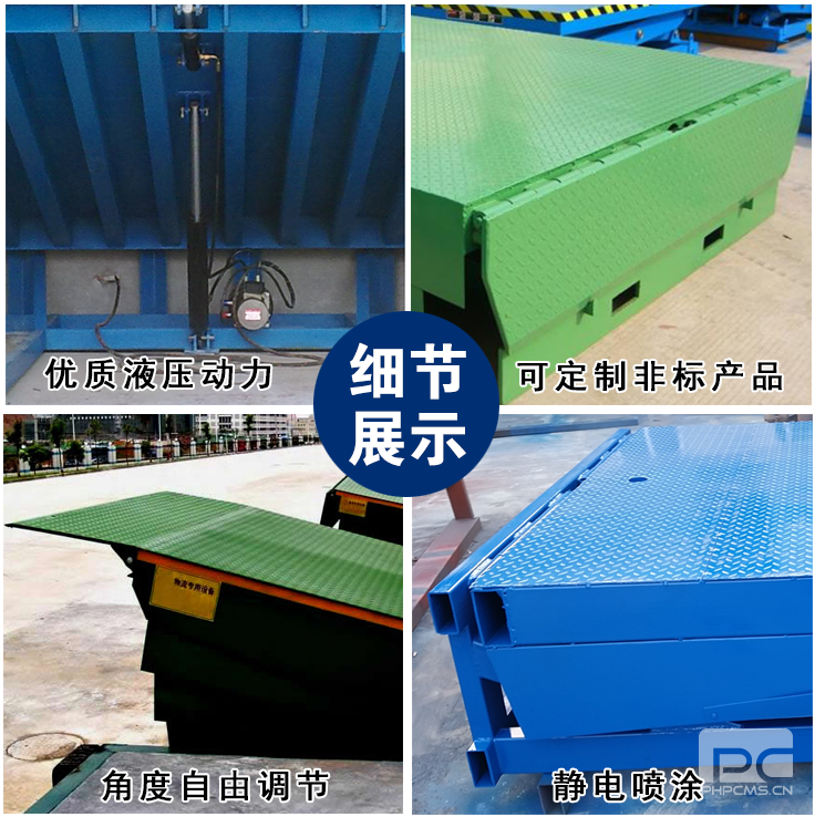 1、電動液壓高度可任意調節 ,提高(gāo)裝卸效率的(de)液壓固定(dìng)式登車(chē)橋,采用全(quán)液壓驅動,操(cāo)作方便(biàn)運行可靠。